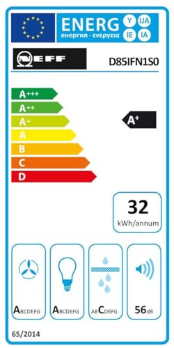 Das technische Highlight der NEFF D85IFN1S0 ist die Kombination aus Efficient‑Drive‑Motor, sehr hoher Luftleistung von 431 m³/h (Abluft) sowie über 700 m³/h in der Intensivstufe. Damit gehört sie zu den leistungsstärkeren Schräg‑Wandessen und bleibt trotzdem mit A+‑Effizienzklasse und nur etwa 32 kWh Jahresverbrauch äußerst sparsam. Die kochfeldbasierte Haubensteuerung, TouchControl‑Bedienung und dimmbare LED‑Beleuchtung runden das Bild ab und machen die D85IFN1S0 zu einer technisch durchdachten Premium‑Lösung für modern eingerichtete Küchen.